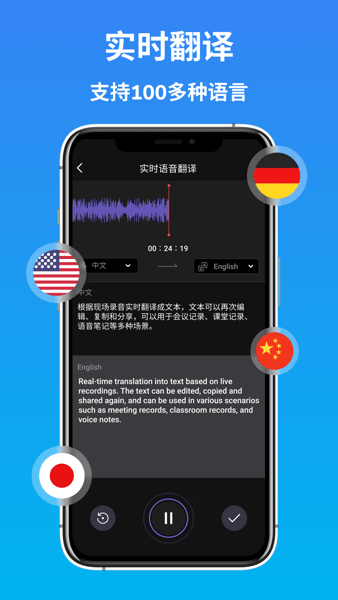 提供实时中英文翻译、中英文音频转文字服务,可满足语音录音转文字,语音实时翻译,图片转文字,语音转换文字,视频转文字,语音变文字,音频转换文字,录音翻译,语音识别,语音翻译、专业录音等需求, 帮助你快速提升工作效率。
