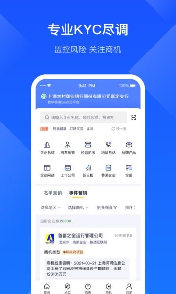 帮助商务对接,把握竞业发展动态,查询上下游合作企业信息;