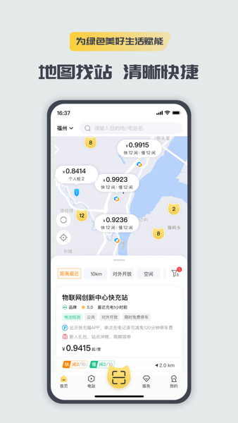 快充喵充电桩app支持地图找站,支持快速的电池检测、设备报修功能,实时查看电站的价格信息,查看空闲车位,相关的充电活动一目了然!