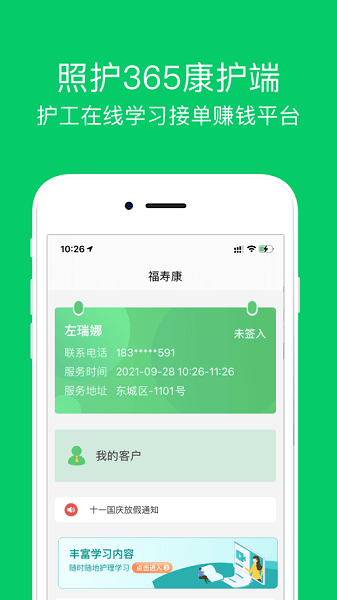 为执业护士、康复师、护工等医护人员提供上门居家护理及康复服务的接单工具和职业交流、学习、培训的软件。