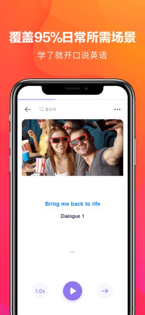 1、每天18分钟,核心模板句型+实用场景拓展+人工智能对话,让你告别死记硬背,日常交流脱口而出。