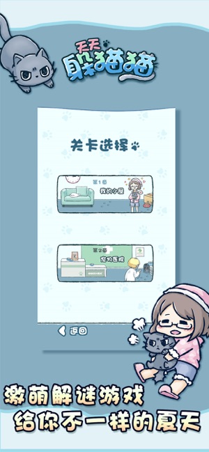 1、是一款卡通风格的解谜手机游戏。如果玩家找到了隐藏的英国短毛蓝猫,就可以成功通过传球。