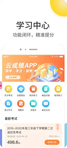 云成绩app是功能特别丰富的手机查询管理服务学习软件,免费的成绩分析云服务,帮助学校快捷分析考试和公布结果,云成绩app旨在让每位教师和学生都从成绩中了解更多。