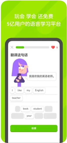 多邻国app最新版是小编自用的一个免费学英语app,它最大的优势就是非常适合零基础的学生来进行学习,除了英语,还内置了日语、汉语、法语等世界各国的语言可以免费学习!