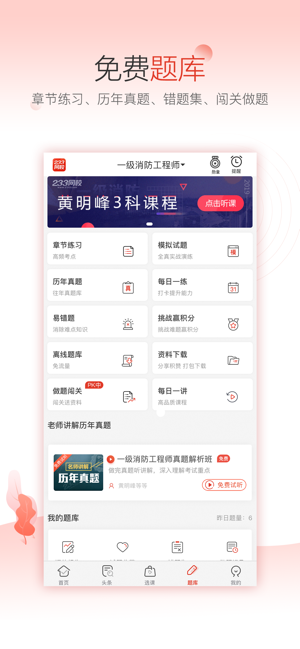 4、日常练习、章节练习、模拟考场、历年大量真题,配备名师视频分析掌刷。