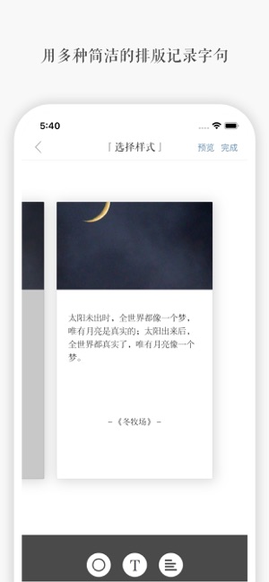 4、自动生成漂亮的文字卡片,还支持分享到多个平台,如朋友圈、微信、微博或保存到相册。
