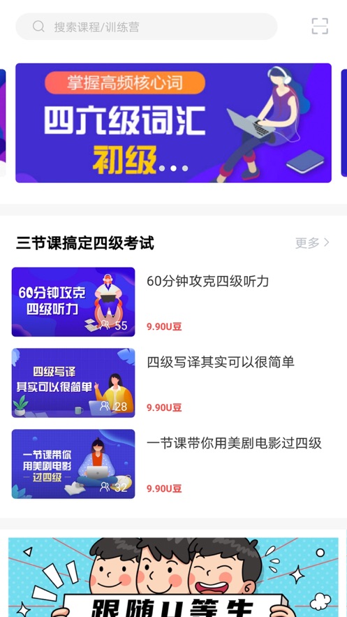 U等生支持发音、流畅、完整的多维度,让你更快的提高成绩。