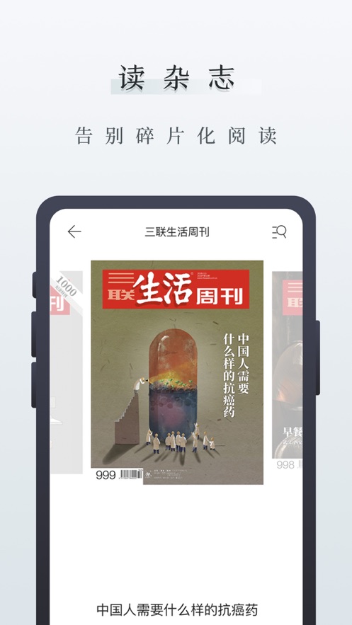 1、国内著名杂志《三联生活周刊》手机应用的全新升级版本。
