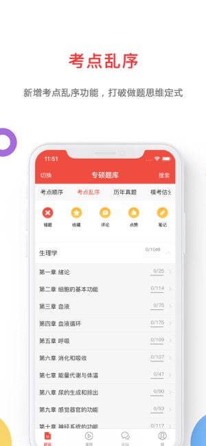 涵盖31年考研真题,提供选题检索、错题、笔记、收藏等实用功能,实现随时学习、实时整理的功能。