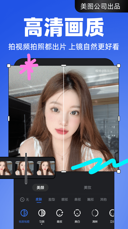 【美颜美妆】自定义参数,素颜也能录视频!肤质细节处理不假面,多项美妆参数提升气色,还原真实美貌。