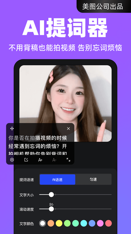 【AI提词器】口播不用背稿,告别忘词烦恼!匀速模式支持自定义字幕滚动速度;AI语速模式智能跟随口播速度滚动字幕。
