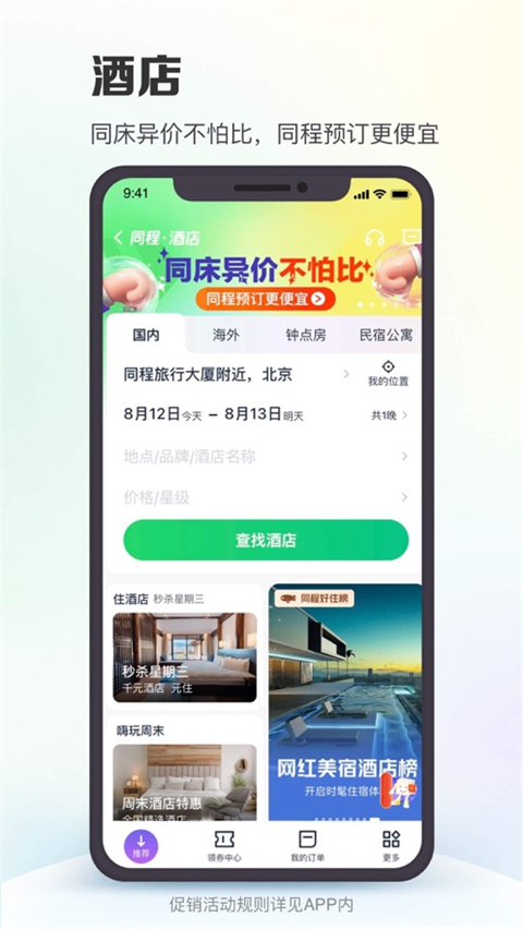 3、酒店:国内及港澳4万余家酒店预订,海量酒店房型照片以及真实住客的点评,入住发点评赢奖金,手机预订返得更多。