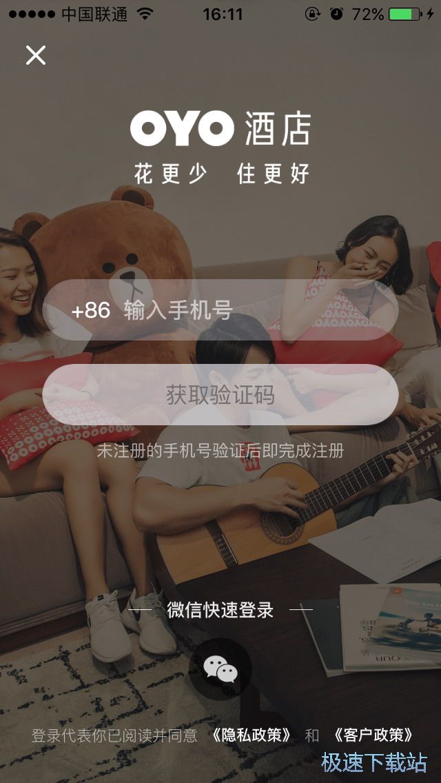 注册登陆界面中我们可以在上方输入手机号码并输入所接收到的验证码来完成注册与登陆,也可以通过点击下方的第三方快速登陆来进行登陆,点击后切换到微信页面中授权登陆即可。