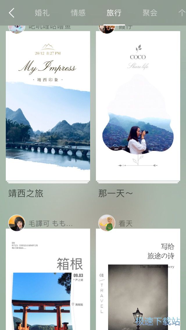 在此页面中我们可以滑动上方的各类标签来浏览该标签内的各类由用户所分享的精美相册, 上下滑动屏幕即可浏览更多的相册信息,而点击我们所需要查看的相册后即可进入该相册中进行浏览。