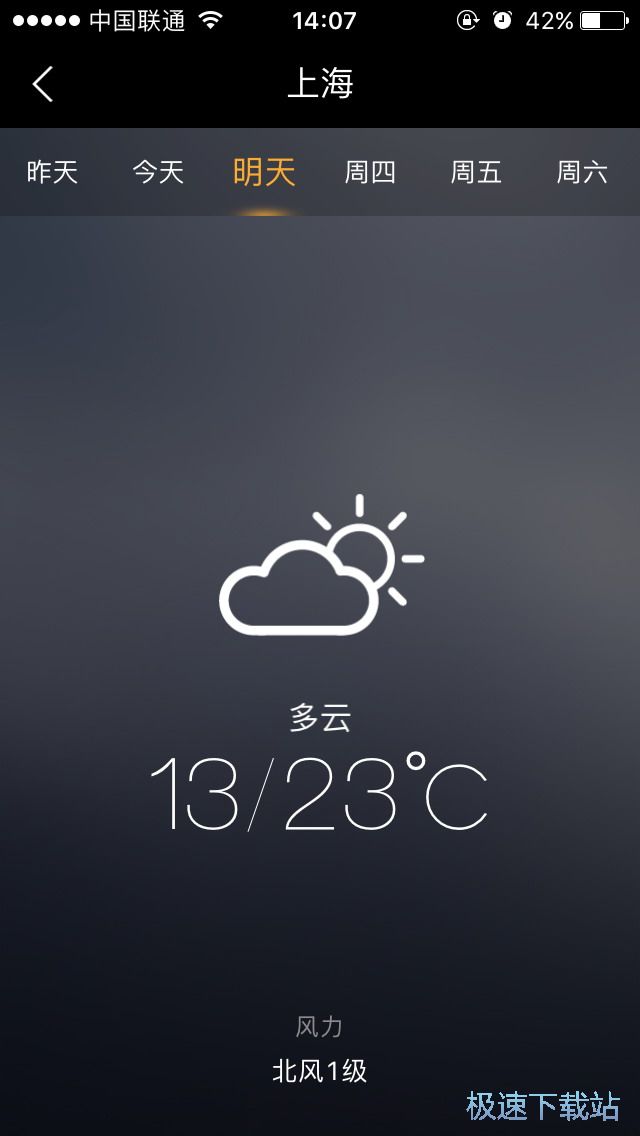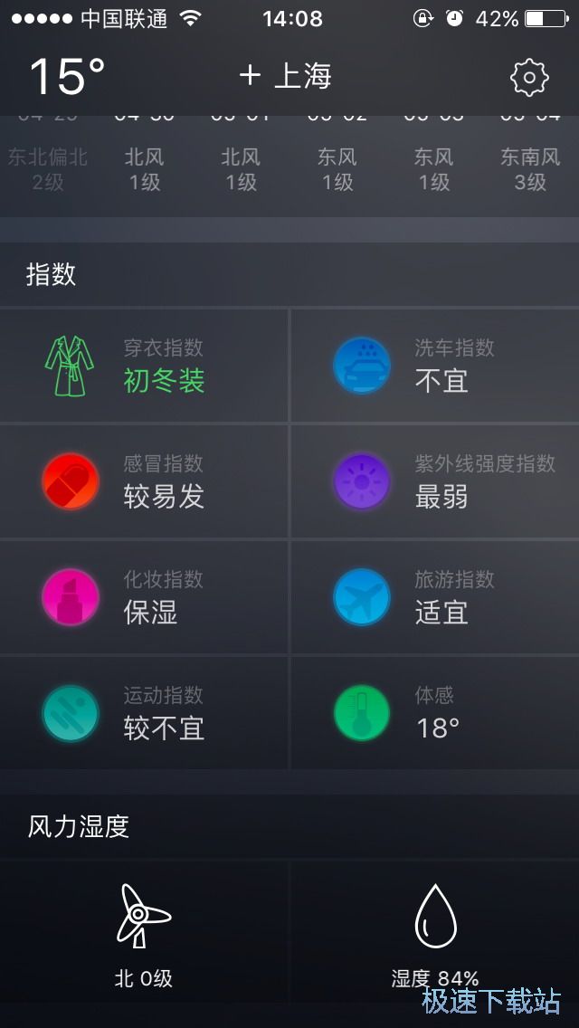 往下滑动屏幕则可以更新实时的天气情况往上滑动则可以浏览下方的未来几天天气情况