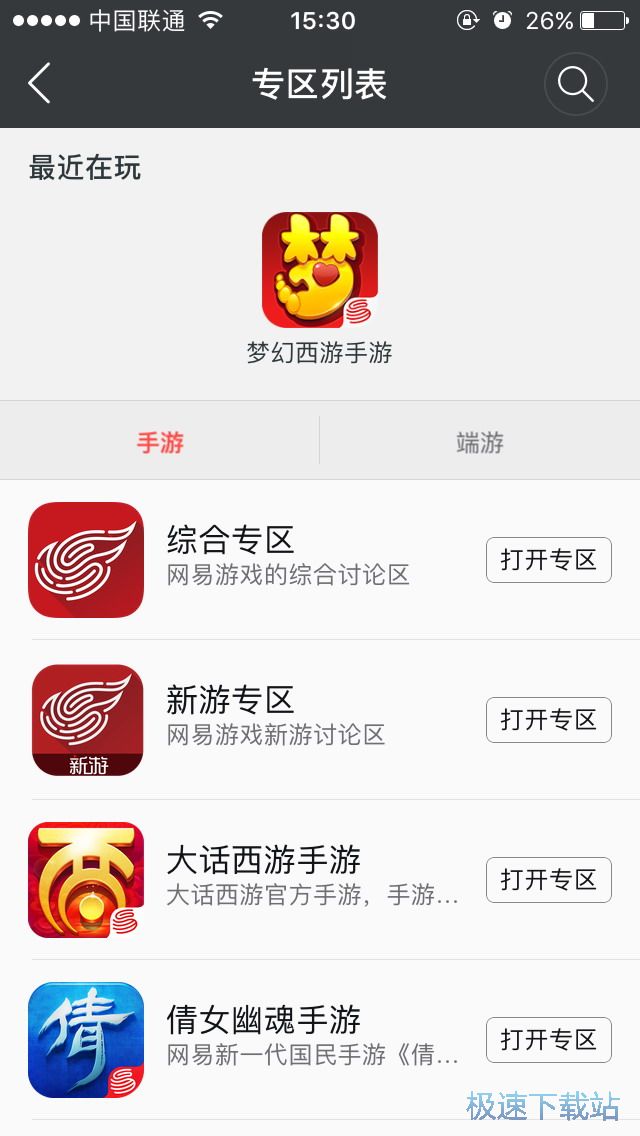 资料填写完毕后我们可以点击左下角的专区图标来进入游戏专区中,此时如果我们进行了登陆的话我们就可以在专区的上方查看到我们近期游玩过的游戏,而在下方滑动则可以浏览更多的游戏专区,左右滑动则可以选择网易的手游或者是端游专区,点击我们需要进入的专区则可以进入到该专区的首页中。