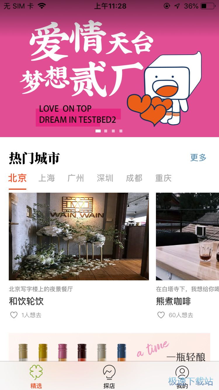 在首页中可以上下滑动屏幕来浏览首页中根据城市所推荐的各类特色小店或是好玩好去处