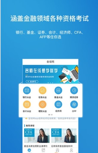 金培网app-随时随地学金融金培网是由山东金培教育科技有限公司经过倾力打造的金融领域职业教育平台,提供视频课程服务,配合名师专题讲座、直播课,模拟做题系统,实时互动,达到理想的学习效果。平台涵盖金融领域各种资格考试,任你选学。