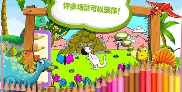2. 选择你最喜欢的场景和颜色,如你所愿!通过着色恐龙和创造你独特的艺术品表达的创造力!