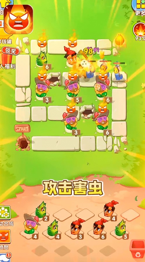 愤怒的花花是非常有趣的合成植物游戏,在空闲的时间里,有更多精彩的模式等待着大家的挑战。 打造你的防线,一条防线是僵尸,另外一条防线是昆虫,也可以用同样的植物合成培育全新的植物。