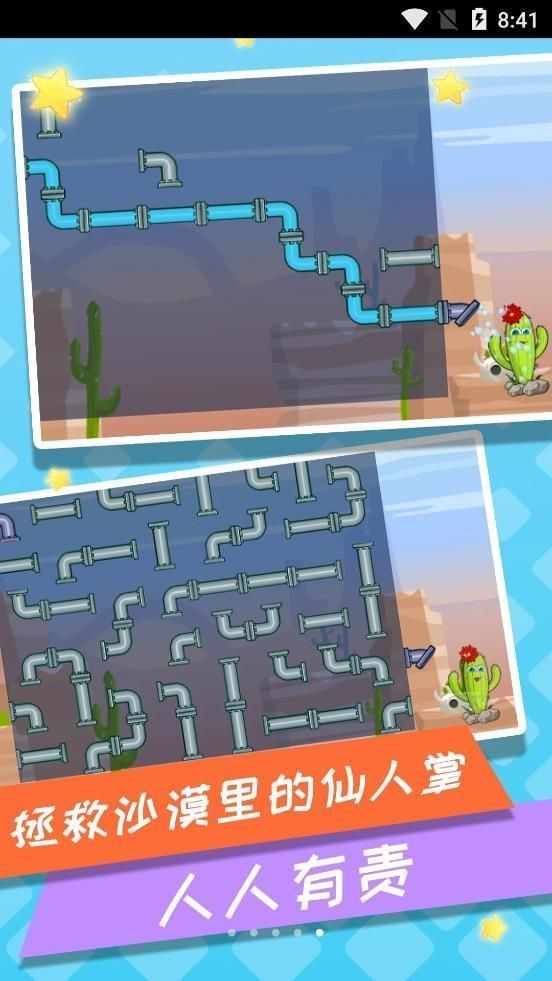 救救仙人掌是一款令人愉快的猜谜游戏。 仙人掌现在很缺水。 玩家需要导入到仙人掌聚集的地方的管道并浇水。 玩家只需要简单的点击操作就可以了,海量的关卡带来无限的乐趣,游戏关卡难度逐渐提高。