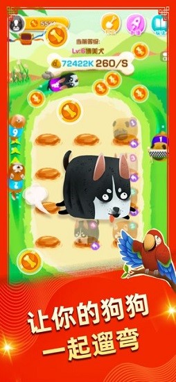 可爱的狗狗能够帮你赚取一定的零花钱,通过合成还能够解锁更多可爱的狗狗。