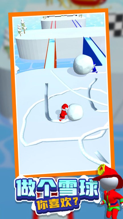 雪球争霸赛游戏官方版拥有非常精彩有趣的滚雪球玩法,在游戏中大家可以通过滚雪球来进行前进闯关,和对手一起来比赛,看看谁能够更快的达到目的地,在游戏中大家可以看到一些不同的赛道,狭窄的道路,大家需要小心谨慎的滚动雪球哦,看看你能不能的第一名吧。