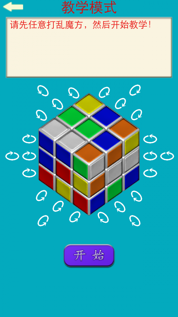 一天学会玩魔方游戏这是一款魔方游戏包含复原魔方一面的教程,一天学会玩魔方手机版输入并演示其他任何魔方教程操作(公式)的演示模式!
