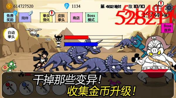 如果选择boss模式就一定要提升拳头的等级,需要让拳头释放出更强大的伤害者。
