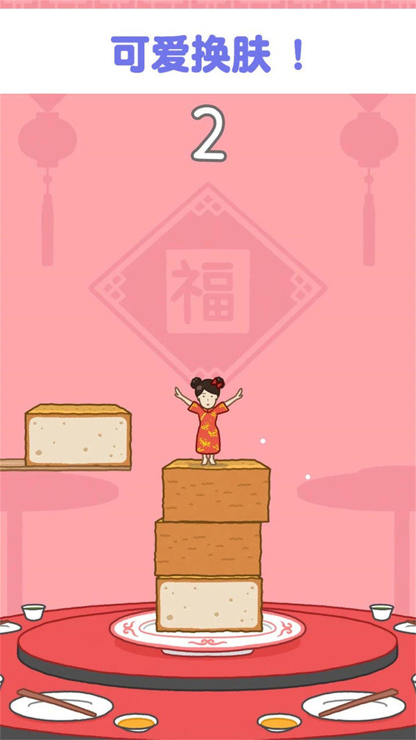 1.点击屏幕进行跳跃,让女孩稳稳落到豆腐上