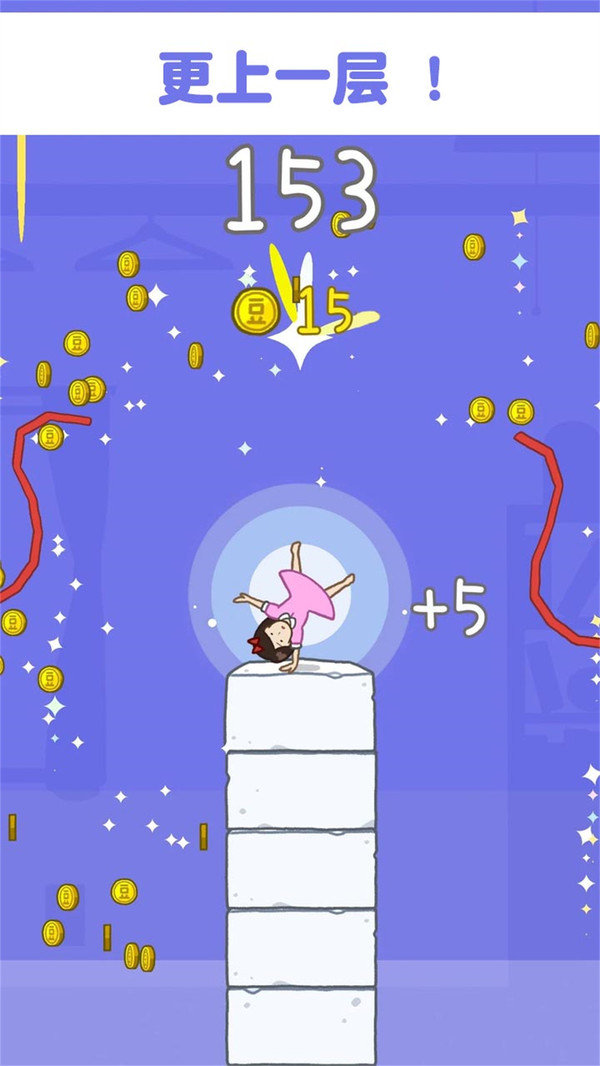 对豆腐情有独钟?那我们一起来叠高高吧! 是时候堆积自己的豆腐塔,准备跳过两个方向出现的障碍物了。将女孩放在每个豆腐中间,进行更多的杂技跳跃。