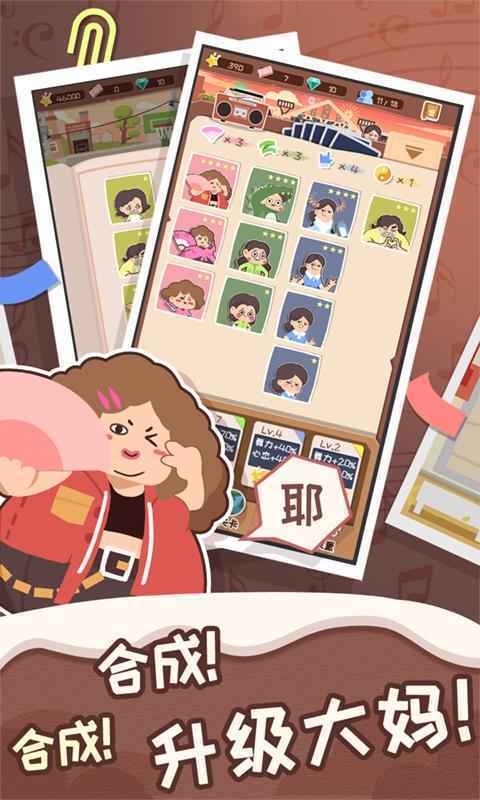 数十种特色大妈等你收集,不同的大妈等级不同,可以不断合成更高级大妈;