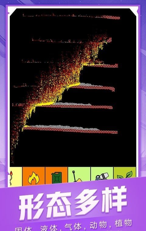 在沙盒游戏中体验粒子物理引擎,各种物质产生拟真化学反应。