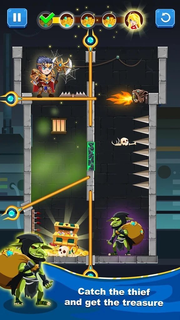 用您的大脑杀死怪物,拔出大头针,激活陷阱以接管宝藏或使用游戏屏幕中排列的陷阱来拯救未婚妻。