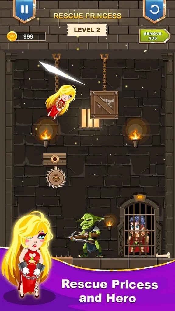 公主营救(Idle Hero)是一款十分益智的休闲闯关游戏。以西方魔幻题材被背景,作为一名英雄你的任务就是需要拯救公主,当公主在危机之中你需要如何才能安全的救出。有些类似拉针的玩法,考验玩家的智慧,如果不小心的话公主可能就会落入危险当中。关卡十分丰富,玩家在挑战的过程中也能够增加不少的智慧,快来尝试吧。