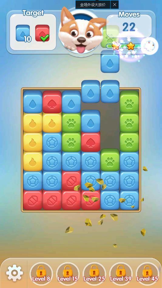 跟随小狗推进故事剧情的发展,经历各种事件,通过方块消除完成各种任务。多种关卡考验,经典的玩法设计,展现你的聪明智慧,通过各种难关的考验,解锁全新故事,感受全新的游戏乐趣。