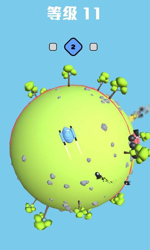玩家通过在地球上转圈圈用来躲避敌人发射的导弹,同时让导弹击中敌人算胜利