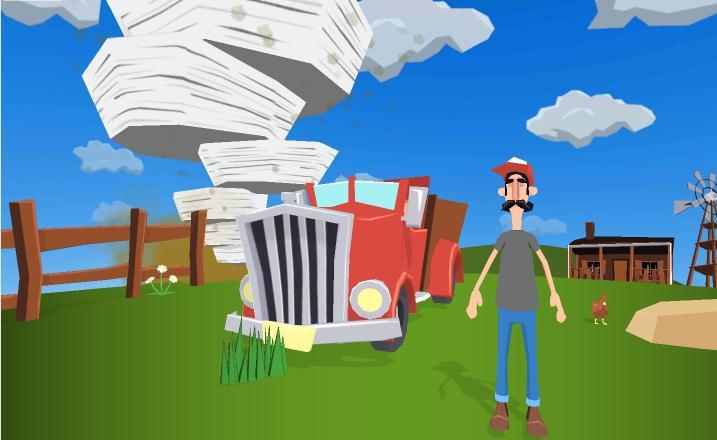 巨大的龙卷风即将来临!跳入你的卡车并尽可能快地开车,收集硬币并避开沿途的障碍物。