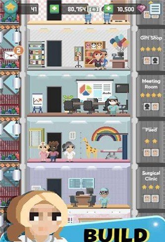 这款游戏首先玩家需要去设计医院的造型,然后通过你的努力来打造一个有着专业医疗设备的医院,那么在你的医院当中会有非常多的房间,玩家需要通过完成更多的任务,让你的房间不断的升级,在升级的过程中,玩家还需要去招募更多的员工,来不断的扩大你的医院。