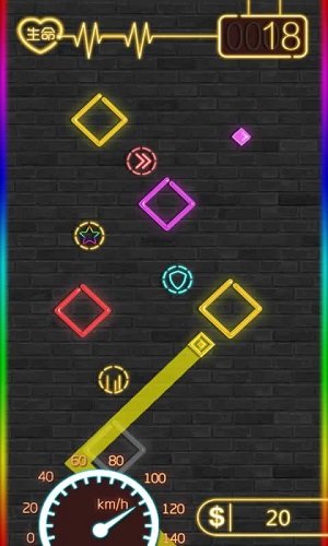 霓虹线条组成的无尽向上跑酷游戏,以霓虹风格呈现。这是放松的一个肯定的方法,因为你的主要目标是射击球。唯一的条件是避免与障碍物的碰撞。不断的冲刺,拯救自己的队伍踏上冒险。使用这些水晶可以在游戏失败的时候开箱子抽奖,如果在三个箱子中抽到两颗心以上就可以原地复活,对于刷分来说十分好用。