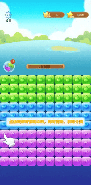 经典三消规则设计.只要是相同颜色的三个方块均可以进行消除。游戏的背景音乐也是十分欢乐的.跟着音乐走可以获得更加有趣的消除体验。这里还有很多小道具可以使用哟.只要完成消除任务就能获得一些红包奖励
