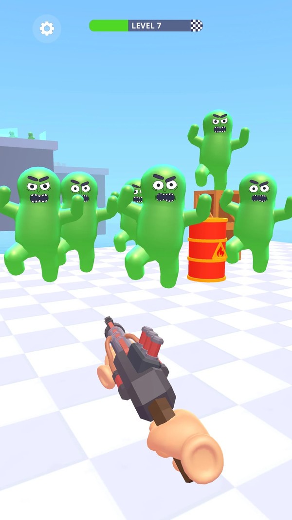 2、这是考验你水平的东西。每个关卡中果冻人的数量都不一样,为了进入下一关卡,必须将它们全部射杀。