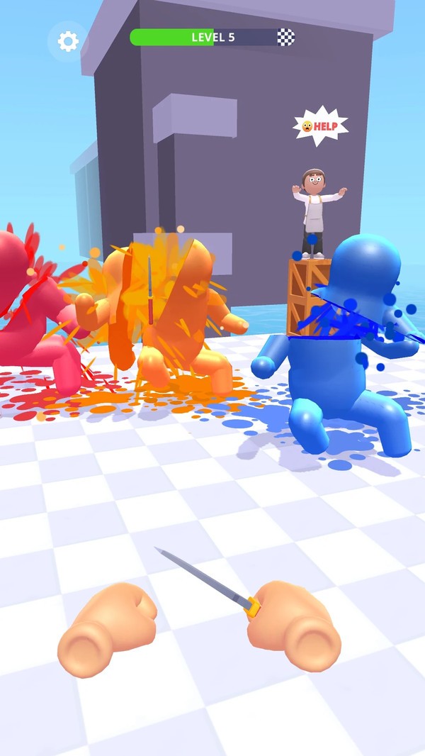 1、这里是休闲益智游戏,第一视角攻击果冻人,杀死他们,你能用的只有刀。