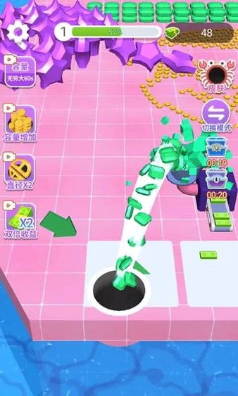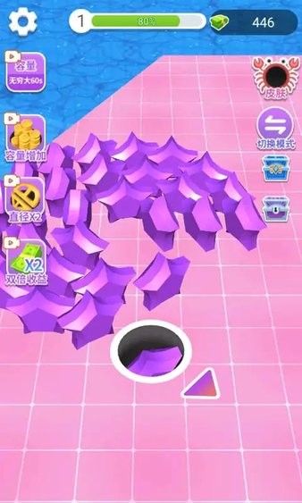 通过滑动屏幕来操控黑洞,从而吞噬掉一切物品。吞噬物品的多少决定了关卡所获得的收益,获得收益后可以升级黑洞的移动速度和容量等,提升游戏效率,获得更高收益!