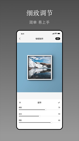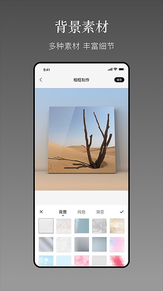 一副相框是一款图像编辑类APP。在APP里可以将图片进行装裱,添加喜欢的相框,让你的照片大放异彩。给你的相片、图片、摄影、绘画等作品提供多款高级的艺术相框,丰富的背景素材,不同风格滤镜。重新定义你的作品。让您的作品锦上添花。
