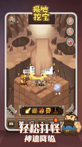 《掘地挖宝》是一款像素风格的挖宝游戏,玩家在地牢里面不断的探索,找到埋藏的宝物,在挖宝的同事也可能会遇到各种各样的怪物,需要尽快的升级提升能力击败怪物从而获得宝物,如果您是喜欢这款游戏的玩家,那么这款游戏一定不会让你失望的,不要再犹豫了,马上来下载吧。