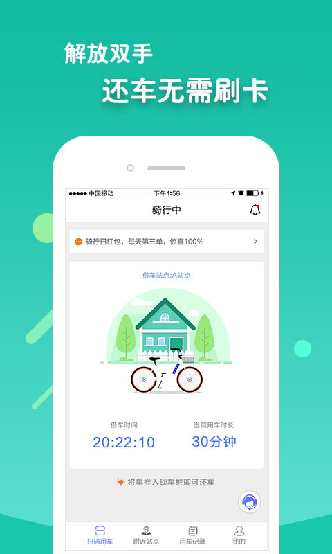 盐田绿动app是一款智能共享单车应用,盐田绿动app为用户提供便捷的绿色共享单车出行方式,用户只需通过盐田绿动app快速寻找近期的共享单车,一键扫码,轻松出行,同时无桩式停车让用户出行生活更方便,全程路线记录,消费透明,保障您的出行安全,随时随地停车,手机操作,一键开锁,让您在便捷的同时,享受惬意的出行体验,大家快来下载吧!