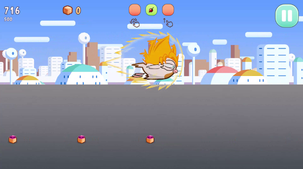 1、点击屏幕操作饥饿的小鸟在街道进行冒险。