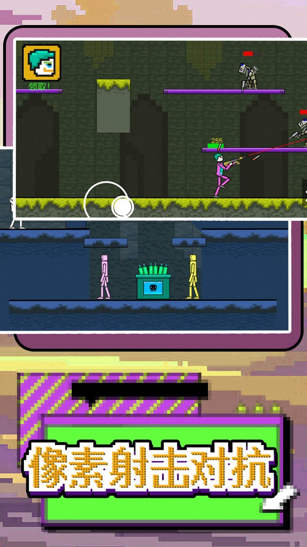 2、多人互动PK:玩转像素世界可以和伙伴PK,需要不断控制屏幕上的虚拟摇杆。