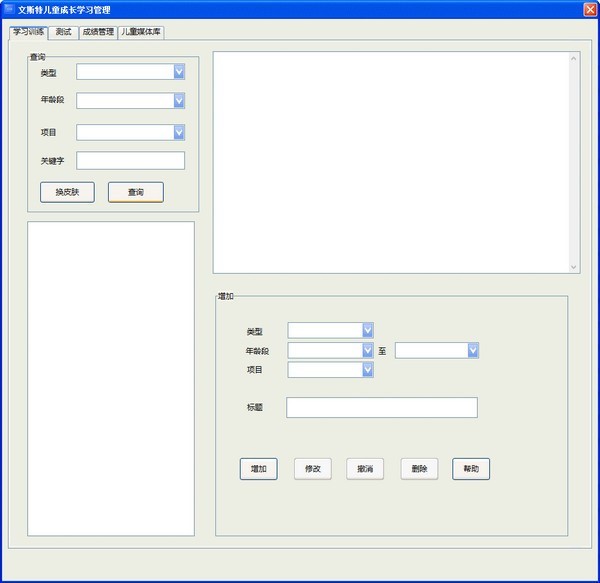 学习管理功能:从学龄前的幼儿早教到小学的义务教育,孩子每个阶段的成绩和表现尽在其中,不论是情商的还是智商的都有详细的指导和测试对比图。这些数据的统计分析无疑对发现孩子的特长和把握孩子的成长方向提供了良好的帮助。同时提供丰富的诗歌、寓言等儿童学习媒体库。
